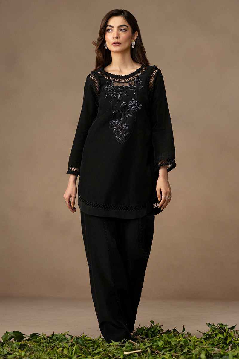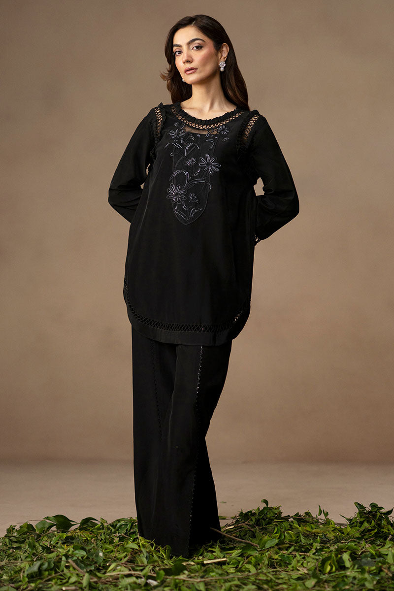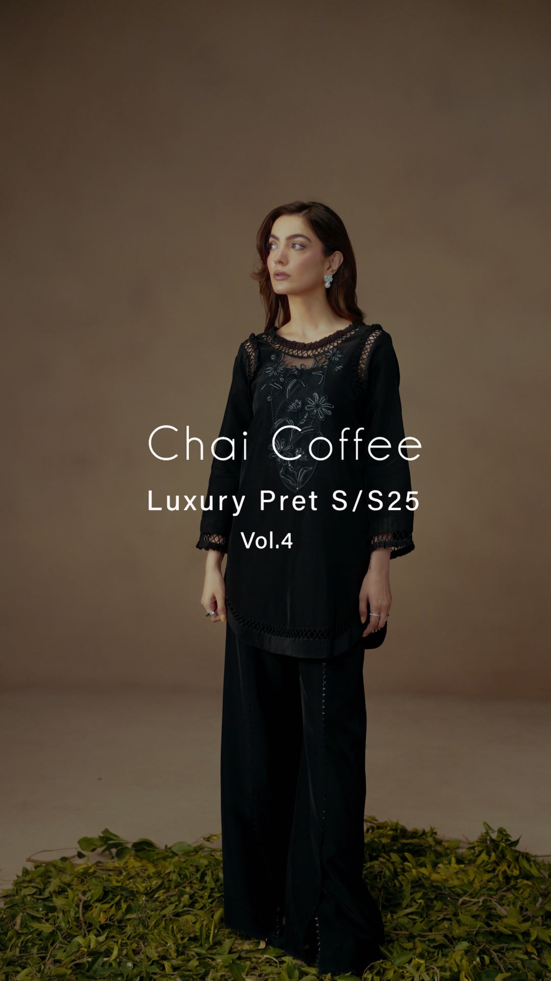 For when you want to look like you know exactly where you’re going, even if the plan came together five minutes ago. When coffee turns into catch-up turns into dinner, the Black Broncho ensemble keeps pace effortlessly. Pleated trims edge the neckline and shoulders, adding texture without fuss. It’s paired with wide-leg trousers, subtly embellished down the leg, for a look that’s as pulled together at 11 a.m. as it is at 11 p.m.