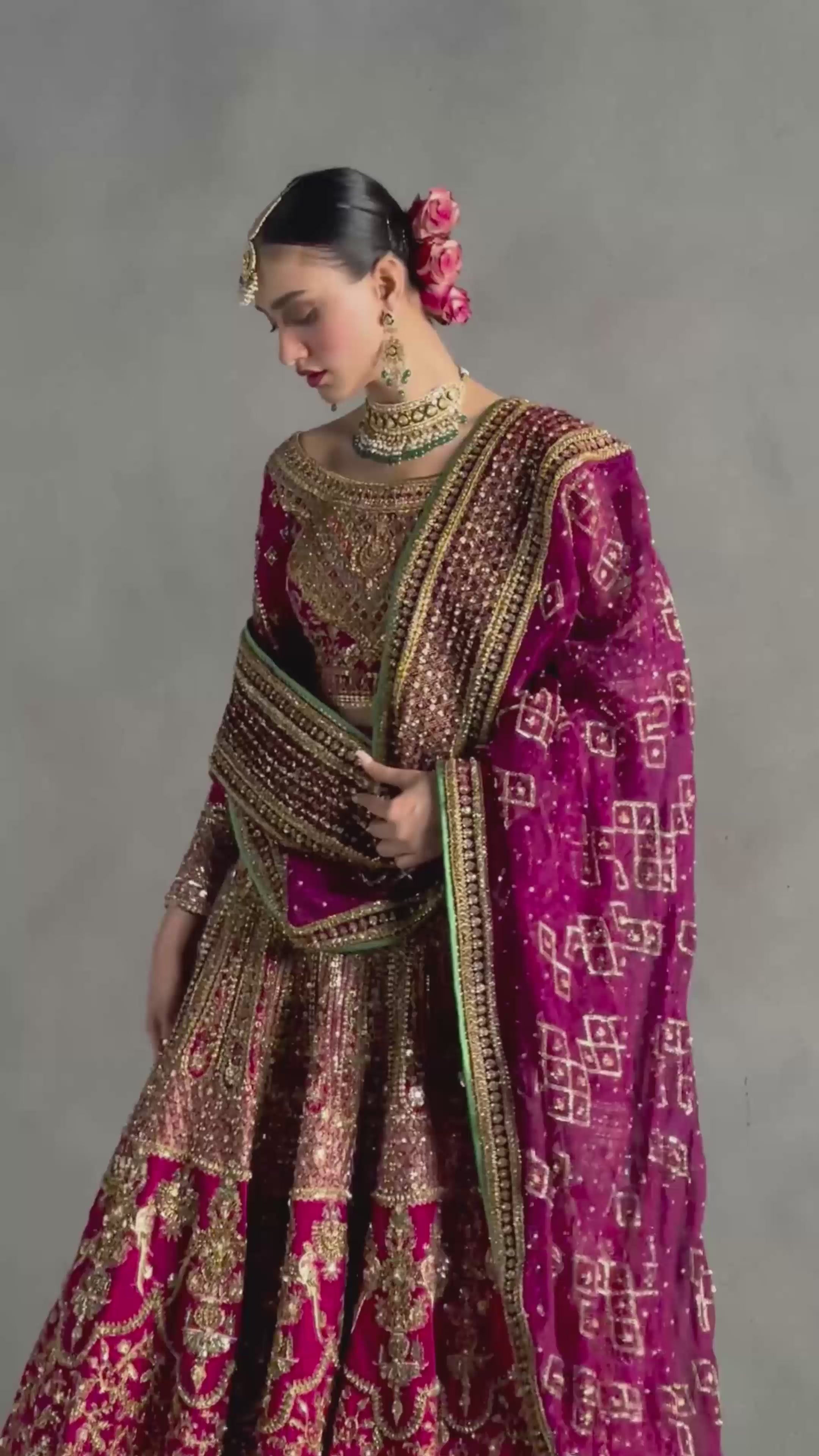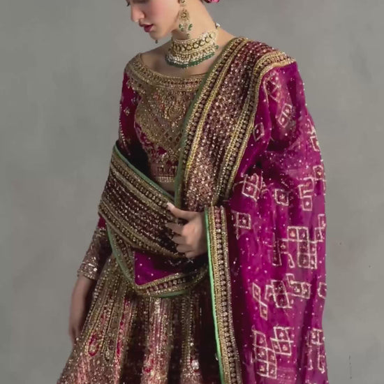 Kaif is our signature rich burgundy maroon colored bridal ensemble that will surely leave you spellbound with his impeccable design. It is adorned with luxurious embroidery that spans from hem to the neckline., the skirt features beautiful floral vases encased in symmetrical niches and accented with beautiful birds and vines.The bodice and sleeves featured intricate linear patterns, it is paired with coordinated marching diaphanous dupatta balancing the ensemble with simpler pairing featuring intricate embroidery along the borders and flirty tassels