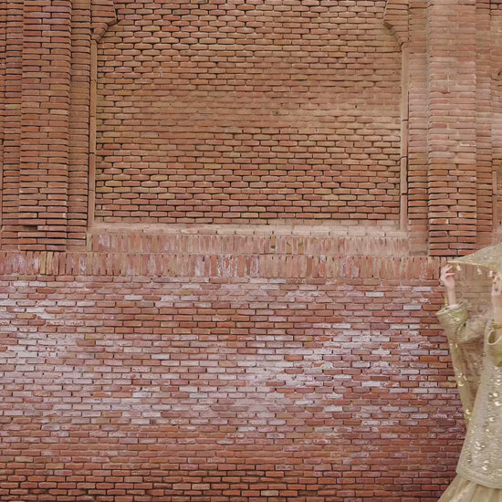 A stunning skin-toned jacket, exquisitely adorned with intricate embroidered jaal and delicate 3D floral motifs, finished with a shimmering pani border for a subtle touch of glamour. It is paired with a beautifully screen-printed organza sharara featuring a pani border, and a sequin sitara–embellished dupatta blooming with soft florals. Together, the ensemble radiates ethereal grace and modern regal allure.